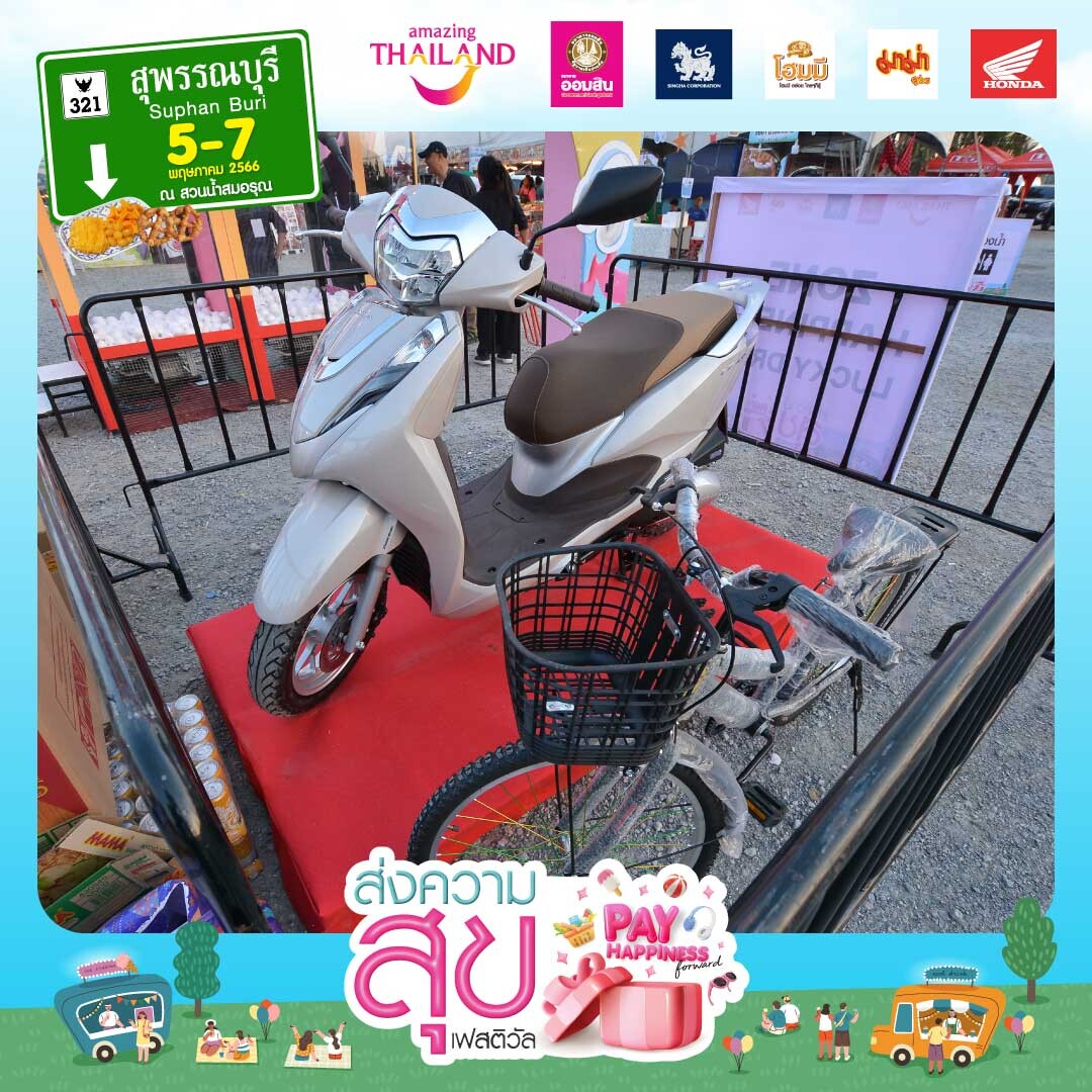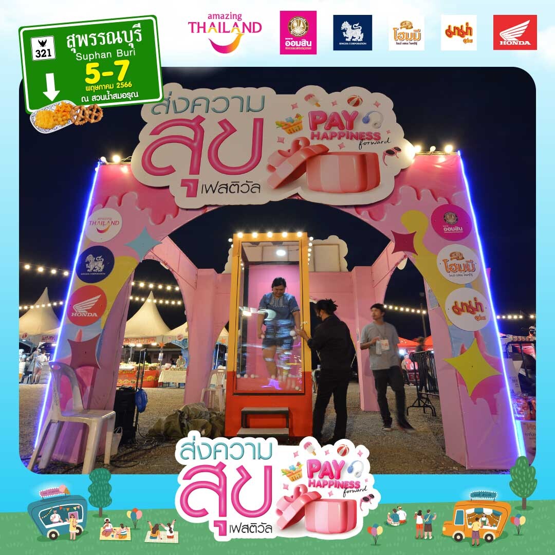 มอบรอยยิ้มของชาวสุพรรณบุรีและนักท่องเที่ยวจากจังหวัดใกล้เคียงกับการจับจ่ายซื้อสินค้าหลากหลายจากผู้ประกอบการในพื้นที่ พร้อมชมคอนเสิร์ตจากศิลปินชื่อดังแบบจัดเต็ม ทำให้ตลอด 2 วันของการจัดงานมีผู้เข้าร่วมงานอย่างคึกคัก โดยเฉพาะไฮไลท์สำคัญกับกิจกรรม Happiness Lucky Draw ที่มีผู้โชคดีรับรางวัลเป็นมอเตอร์ไซต์ขับกลับบ้านไปแบบฟรี ๆ