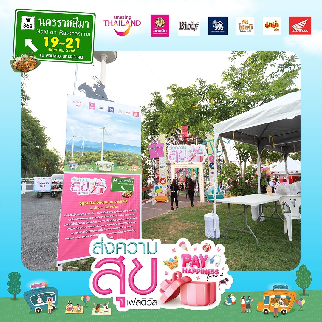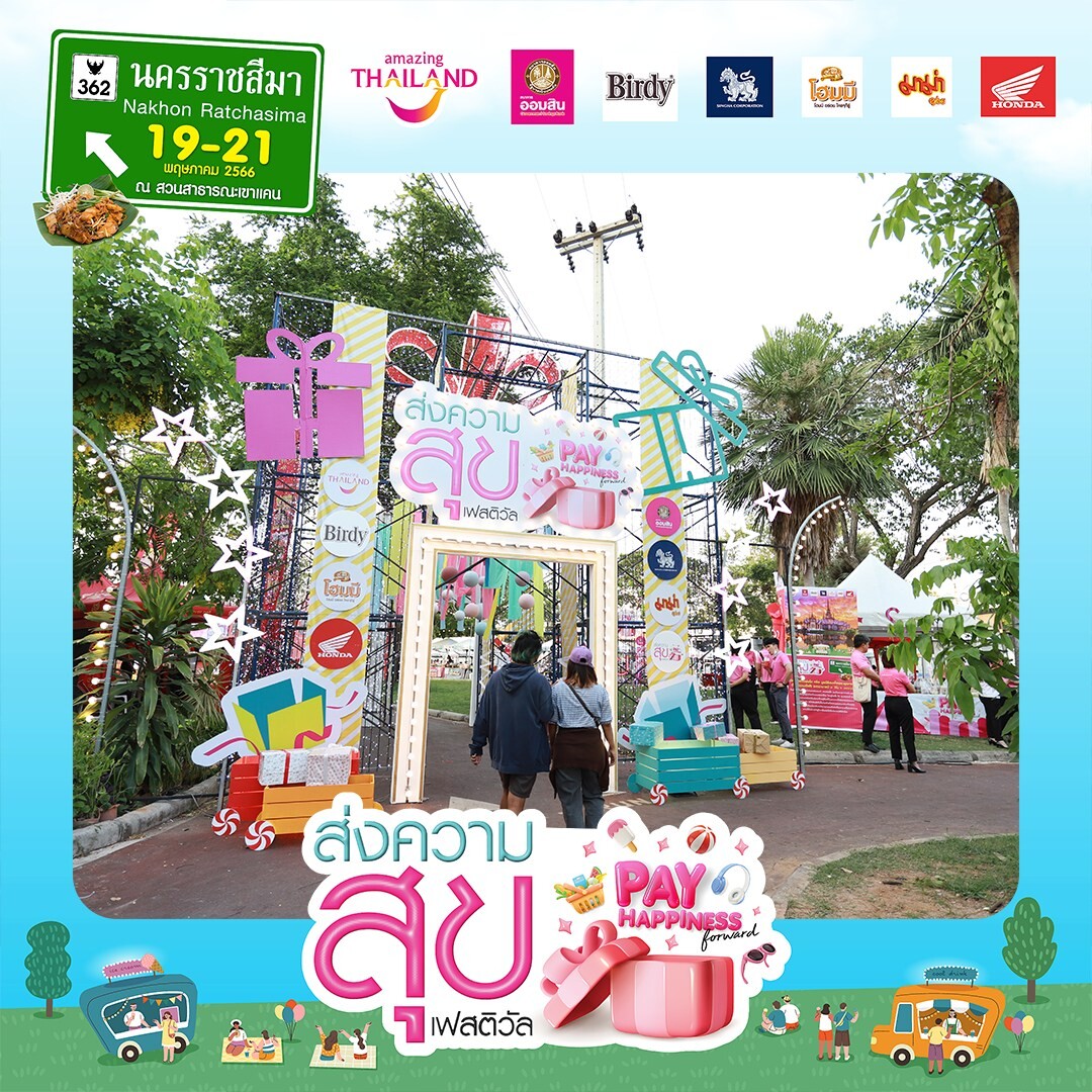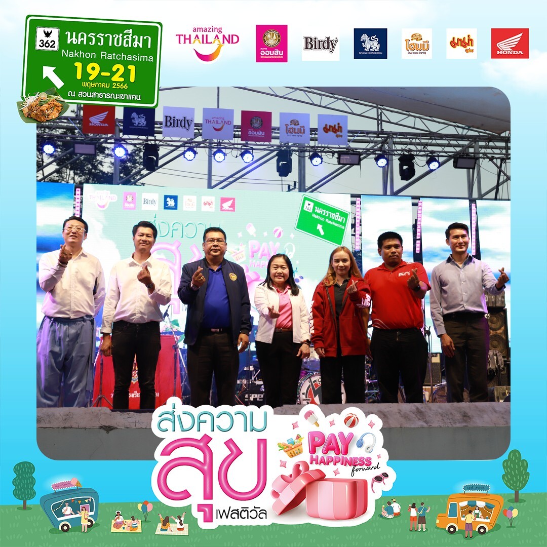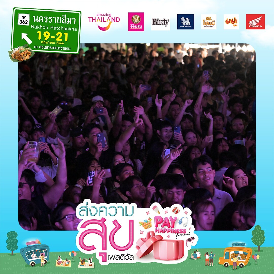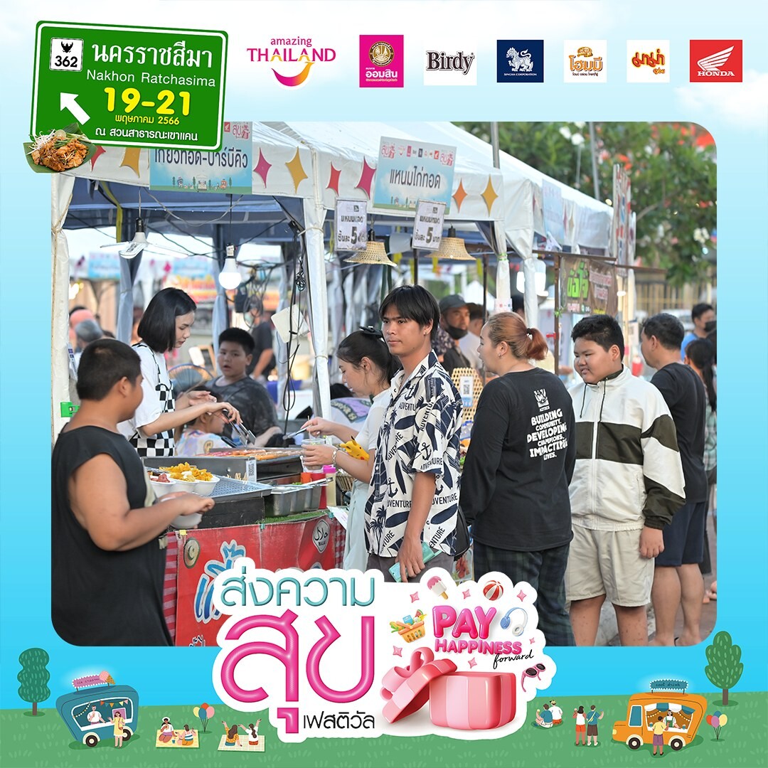 การท่องเที่ยวแห่งประเทศไทยร่วมกับธนาคารออมสิน และ พันธมิตร ได้แก่ เบอร์ดี้, สิงห์คอร์เปอเรชั่น, ขนมอบกรอบตราโฮมมี่, บะหมี่กึ่งสำเร็จรูปตรามาม่า, รถจักรยานยนต์ฮอนด้า มอบรอยยิ้มของชาวนครราชสีมาและนักท่องเที่ยวจากจังหวัดใกล้เคียงกับการจับจ่ายซื้อสินค้าหลากหลายจากผู้ประกอบการในพื้นที่ พร้อมชมคอนเสิร์ตจากศิลปินชื่อดังแบบจัดเต็ม ทำให้ตลอด 3 วันของการจัดงานมีผู้เข้าร่วมงานอย่างคึกคัก โดยเฉพาะไฮไลท์สำคัญกับกิจกรรม Happiness Lucky Draw ที่มีผู้โชคดีรับรางวัลเป็นมอเตอร์ไซต์ขับกลับบ้านไปแบบฟรี ๆ